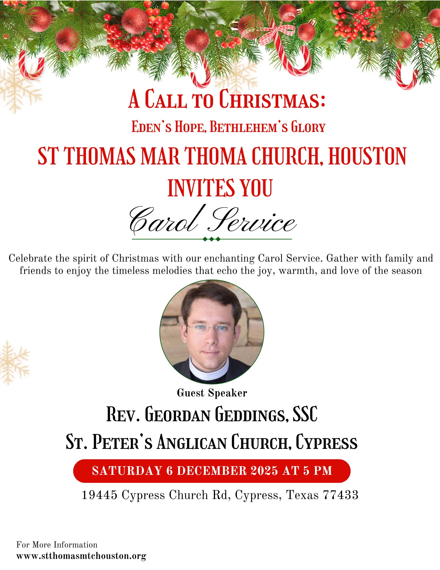 We are the newest Marthoma Church in Houston Area. Established in 2018, we are located in Cypress,TX, the north west side of Houston. STMTC has a vibrant Sunday School Sevika Sangham, Choir, Youth Fellowship and Senior Fellowship. These organizations cater to the spiritual needs, nurture Christian character, impart Biblical instruction, and provide opportunity for social interaction to each age group.